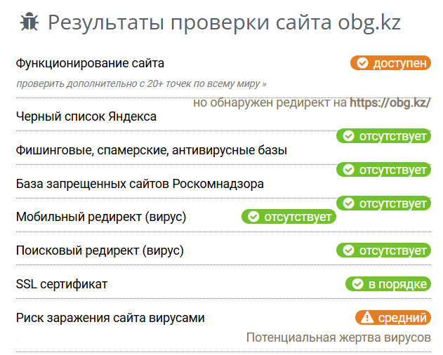 Сервис работает шустро. Меня в нем, правда, только одна вкладка заинтересовала – "Вирусы". Но я так и не понял, он на все сайты выдает, что риск заражения "средний" и "высокий"? И что вообще под этим подразумевается – что надо защиту усилить, или что вирусы уже по сайту бегают?